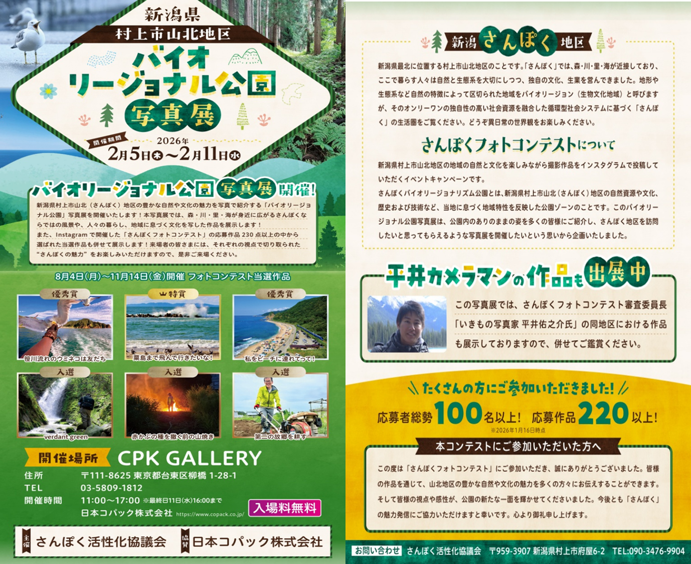 新潟県 村上市山北地区 バイオリージョナル公園 写真展 開催! 是非「さんぽく」の自然を観て感じてください。
